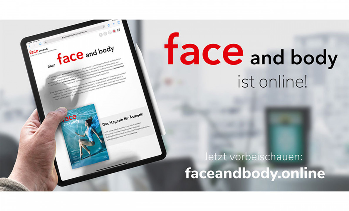 Die seit vielen Jahren in Fachkreisen etablierte interdisziplinäre Printpublikation „face and body“ wird ab sofort durch eine neue Webpräsenz unter www.faceandbody.online ergänzt. Aktuell, informativ und branchenrelevant – face and body online ist DIE Informationsplattform für plastische und ästhetische Chirurgen und Dermatologen.